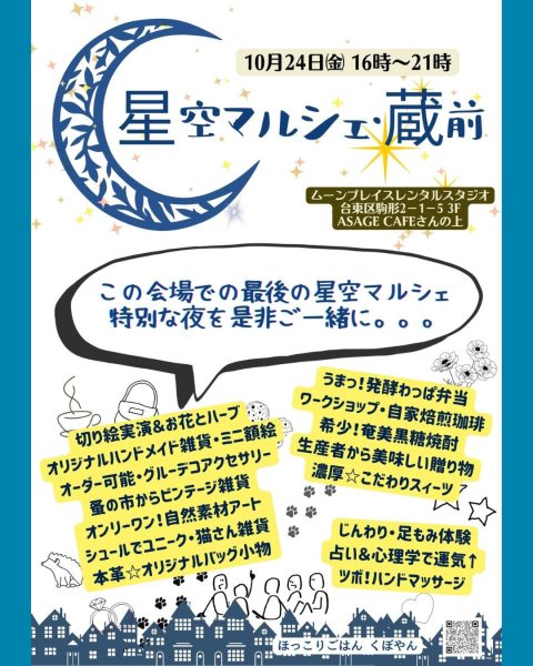 蔵前のムーンプレイスレンタルスタジオで開催される『星空マルシェ蔵前』に出店します。